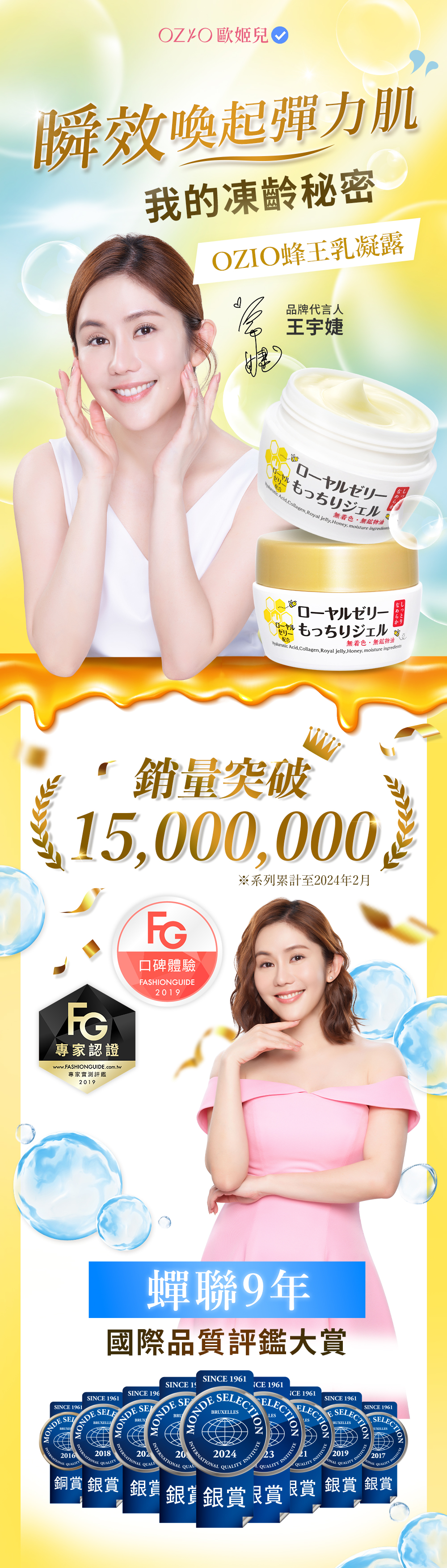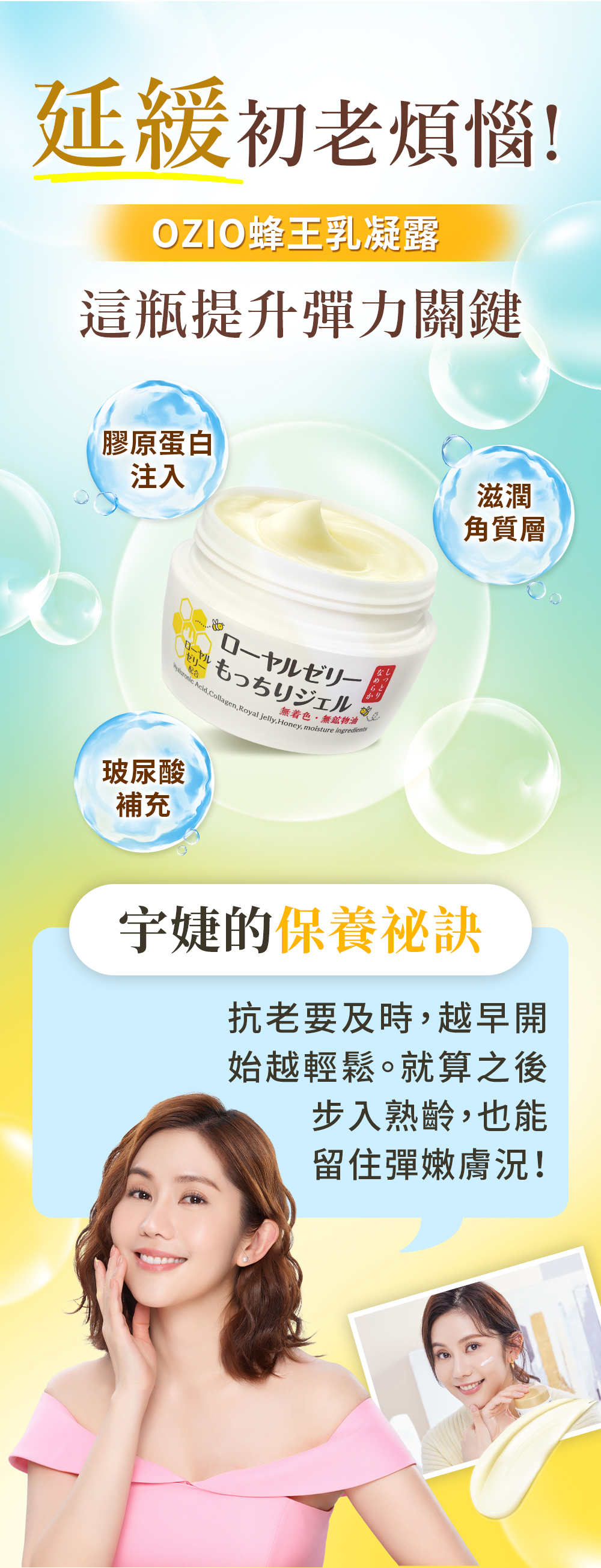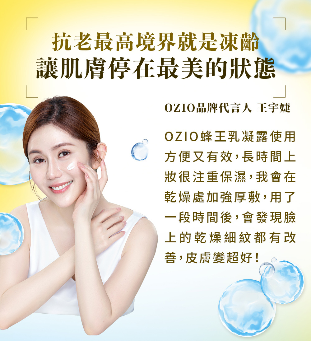 OZIO 蜂王乳極致滋養精華保養前加一滴、極致彈潤,實現超凍齡。搭配蜂王乳凝露效果更加乘。
