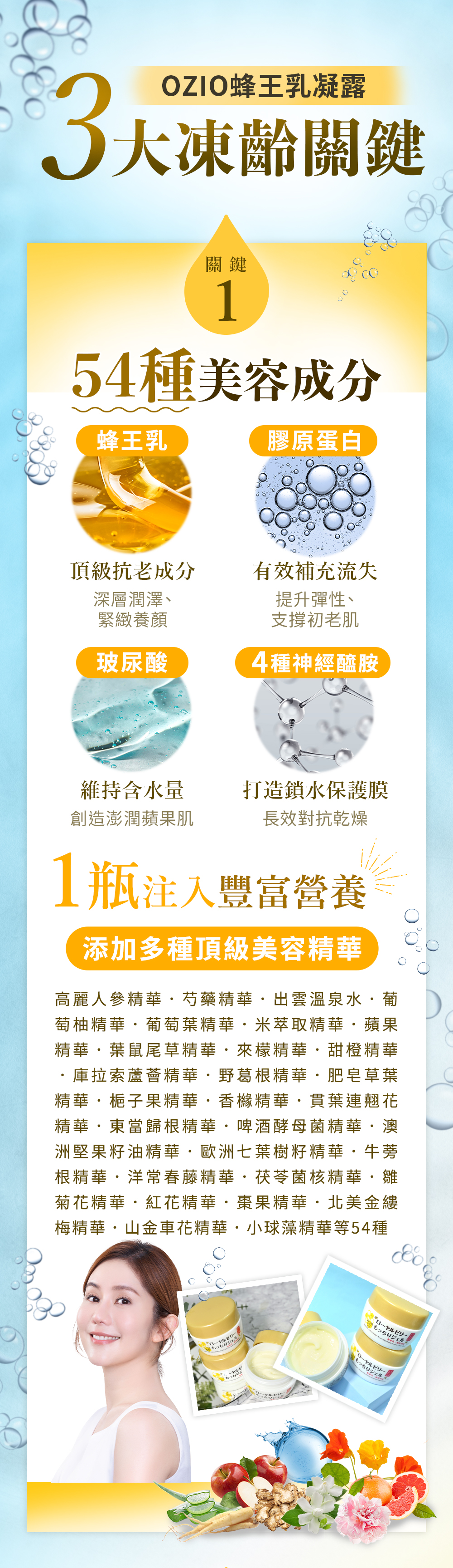 OZIO 蜂王乳凝露6 合 1 全能保養,高滲透技術,快速補水、撫平乾燥細紋。