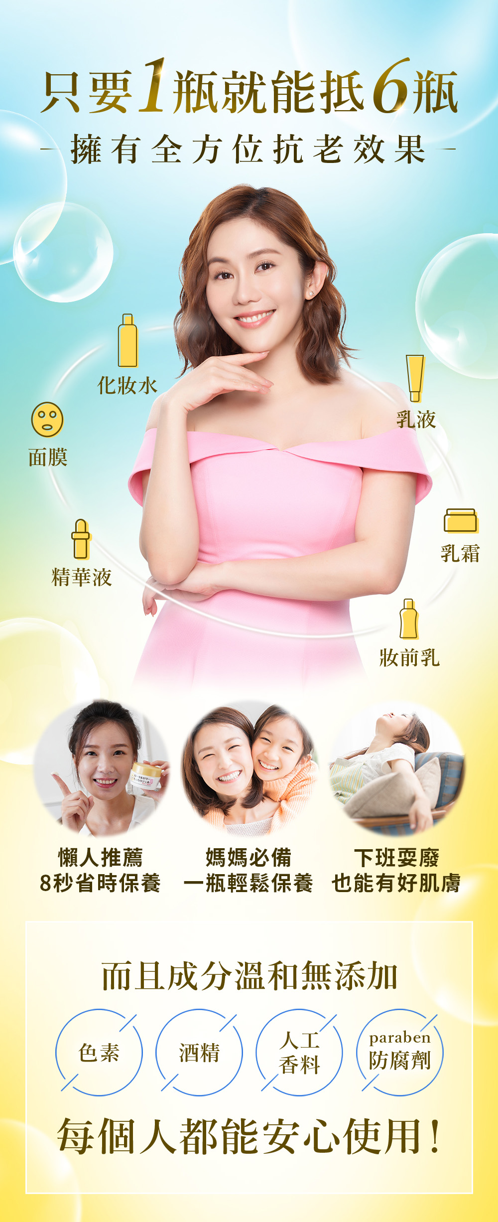 ※對抗老化指的是在保養品效果範圍內,保養隨年紀增長而顯老的肌膚