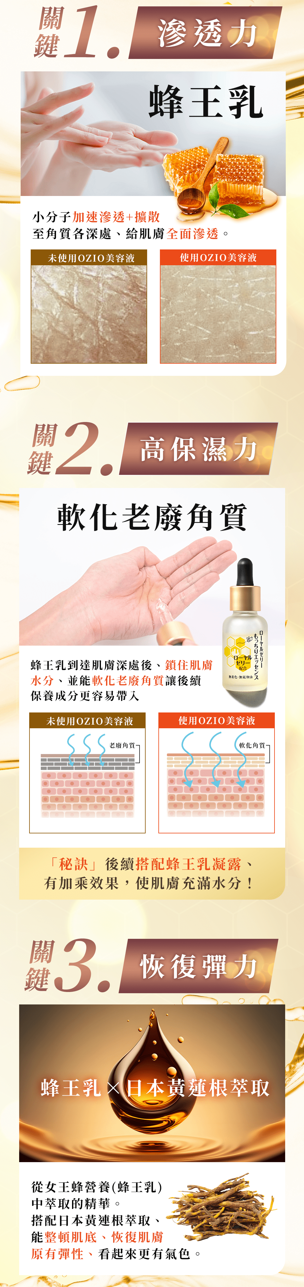 OZIO 蜂王乳凝露EX特潤升級款,保濕配方添加,深層滋潤抗老。